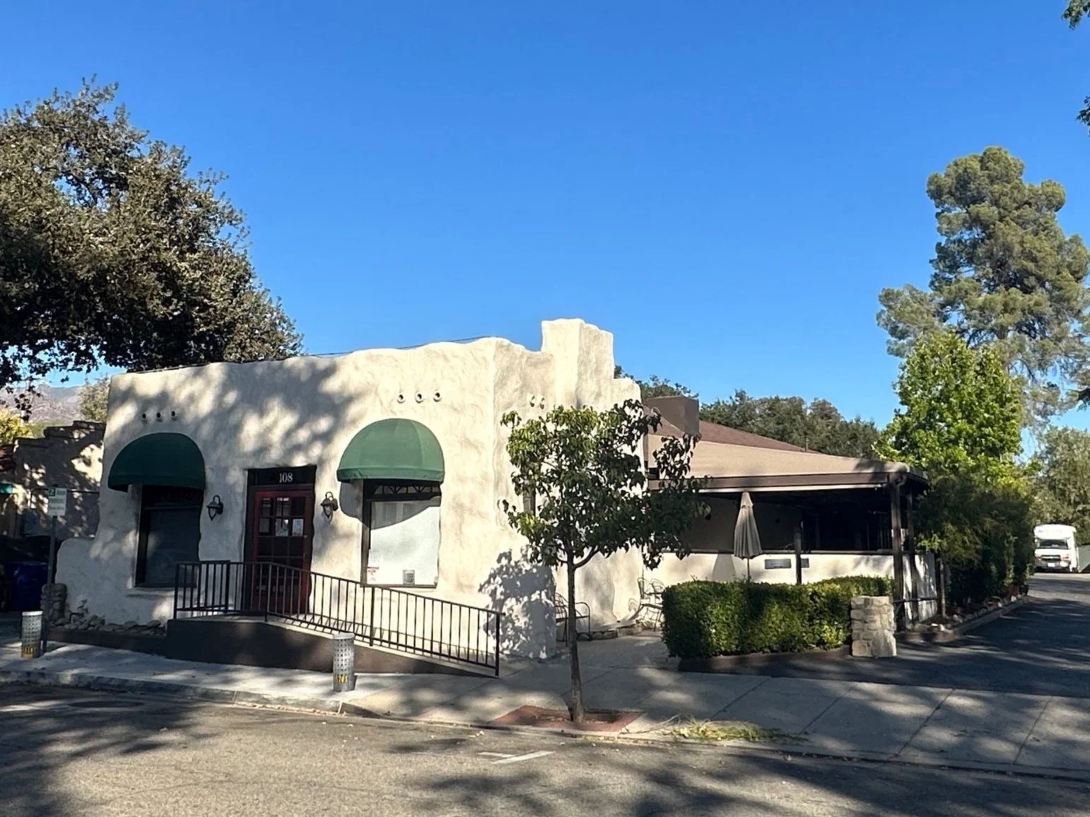 A former restaurant and bakery in downtown Ojai, this location features a large covered patio with heaters as well as an indoor space for meetings or private events.